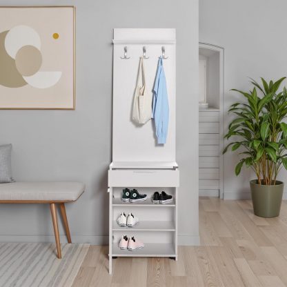 {"id":15242908467585,"title":"Adore White Hall Stand with Drawer, Hooks \u0026 Shoe Cupboard – Entryway Organiser","handle":"adore-white-hall-stand-with-drawer-hooks-shoe-cupboard-entryway-organiser","description":"\u003cp data-start=\"258\" data-end=\"845\"\u003eThe Adore White Hall Stand is a stylish and practical entryway organiser designed to keep your hallway neat and clutter-free. Finished in a clean white, it features three sturdy metal coat hooks, a useful top shelf for accessories, and a convenient drawer for small essentials. The lower shoe cupboard includes three shelf compartments - two of which are adjustable - offering flexible storage for footwear. With a reversible door that can be fitted to open left or right, this tall hall organiser is perfect for maximising space in modern homes while maintaining a fresh, contemporary look.\u003c\/p\u003e\n\u003chr data-start=\"847\" data-end=\"850\"\u003e\n\u003ch3 data-start=\"852\" data-end=\"872\"\u003e\u003cstrong data-start=\"856\" data-end=\"872\"\u003eKey Features\u003c\/strong\u003e\u003c\/h3\u003e\n\u003cul data-start=\"874\" data-end=\"1360\"\u003e\n\u003cli data-start=\"874\" data-end=\"973\"\u003e\n\u003cp data-start=\"876\" data-end=\"973\"\u003e\u003cstrong data-start=\"876\" data-end=\"904\"\u003eIntegrated Organisation:\u003c\/strong\u003e 3 metal coat hooks and a top shelf for hats, accessories, or décor\u003c\/p\u003e\n\u003c\/li\u003e\n\u003cli data-start=\"974\" data-end=\"1079\"\u003e\n\u003cp data-start=\"976\" data-end=\"1079\"\u003e\u003cstrong data-start=\"976\" data-end=\"1003\"\u003eConcealed Shoe Storage:\u003c\/strong\u003e Bottom cupboard with 3 shelf compartments, including 2 adjustable shelves\u003c\/p\u003e\n\u003c\/li\u003e\n\u003cli data-start=\"1080\" data-end=\"1163\"\u003e\n\u003cp data-start=\"1082\" data-end=\"1163\"\u003e\u003cstrong data-start=\"1082\" data-end=\"1099\"\u003eHandy Drawer:\u003c\/strong\u003e Ideal for storing keys, mail, gloves, and everyday essentials\u003c\/p\u003e\n\u003c\/li\u003e\n\u003cli data-start=\"1164\" data-end=\"1241\"\u003e\n\u003cp data-start=\"1166\" data-end=\"1241\"\u003e\u003cstrong data-start=\"1166\" data-end=\"1186\"\u003eReversible Door:\u003c\/strong\u003e Cupboard door can be assembled to open left or right\u003c\/p\u003e\n\u003c\/li\u003e\n\u003cli data-start=\"1242\" data-end=\"1314\"\u003e\n\u003cp data-start=\"1244\" data-end=\"1314\"\u003e\u003cstrong data-start=\"1244\" data-end=\"1277\"\u003eFlat Pack – Easy DIY Assembly\u003c\/strong\u003e – Instructions \u0026amp; fittings provided\u003c\/p\u003e\n\u003c\/li\u003e\n\u003cli data-start=\"1315\" data-end=\"1360\"\u003e\n\u003cp data-start=\"1317\" data-end=\"1360\"\u003e\u003cstrong data-start=\"1317\" data-end=\"1332\"\u003eDimensions:\u003c\/strong\u003e H 187cm x W 52cm x D 36cm\u003c\/p\u003e\n\u003c\/li\u003e\n\u003c\/ul\u003e","published_at":"2025-11-21T15:54:25+00:00","created_at":"2025-11-21T15:54:23+00:00","vendor":"The Mattress World","type":"All Furniture","tags":["bedroom furniture"],"price":15500,"price_min":15500,"price_max":15500,"available":true,"price_varies":false,"compare_at_price":null,"compare_at_price_min":0,"compare_at_price_max":0,"compare_at_price_varies":false,"variants":[{"id":55005011018113,"title":"Default Title","option1":"Default Title","option2":null,"option3":null,"sku":null,"requires_shipping":true,"taxable":true,"featured_image":null,"available":true,"name":"Adore White Hall Stand with Drawer, Hooks \u0026 Shoe Cupboard – Entryway Organiser","public_title":null,"options":["Default Title"],"price":15500,"weight":32000,"compare_at_price":null,"inventory_management":"shopify","barcode":"","requires_selling_plan":false,"selling_plan_allocations":[]}],"images":["\/\/themattressworld.co.uk\/cdn\/shop\/files\/112446_PRT-511-BB-1-LIFESTYLE-1K-02.jpg?v=1763740281","\/\/themattressworld.co.uk\/cdn\/shop\/files\/112446_PRT-511-BB-1-LIFESTYLE-1K-01-416x416.jpg?v=1763740282"],"featured_image":"\/\/themattressworld.co.uk\/cdn\/shop\/files\/112446_PRT-511-BB-1-LIFESTYLE-1K-02.jpg?v=1763740281","options":["Title"],"media":[{"alt":null,"id":67310798274945,"position":1,"preview_image":{"aspect_ratio":1.0,"height":1000,"width":1000,"src":"\/\/themattressworld.co.uk\/cdn\/shop\/files\/112446_PRT-511-BB-1-LIFESTYLE-1K-02.jpg?v=1763740281"},"aspect_ratio":1.0,"height":1000,"media_type":"image","src":"\/\/themattressworld.co.uk\/cdn\/shop\/files\/112446_PRT-511-BB-1-LIFESTYLE-1K-02.jpg?v=1763740281","width":1000},{"alt":null,"id":67310798406017,"position":2,"preview_image":{"aspect_ratio":1.0,"height":416,"width":416,"src":"\/\/themattressworld.co.uk\/cdn\/shop\/files\/112446_PRT-511-BB-1-LIFESTYLE-1K-01-416x416.jpg?v=1763740282"},"aspect_ratio":1.0,"height":416,"media_type":"image","src":"\/\/themattressworld.co.uk\/cdn\/shop\/files\/112446_PRT-511-BB-1-LIFESTYLE-1K-01-416x416.jpg?v=1763740282","width":416}],"requires_selling_plan":false,"selling_plan_groups":[],"content":"\u003cp data-start=\"258\" data-end=\"845\"\u003eThe Adore White Hall Stand is a stylish and practical entryway organiser designed to keep your hallway neat and clutter-free. Finished in a clean white, it features three sturdy metal coat hooks, a useful top shelf for accessories, and a convenient drawer for small essentials. The lower shoe cupboard includes three shelf compartments - two of which are adjustable - offering flexible storage for footwear. With a reversible door that can be fitted to open left or right, this tall hall organiser is perfect for maximising space in modern homes while maintaining a fresh, contemporary look.\u003c\/p\u003e\n\u003chr data-start=\"847\" data-end=\"850\"\u003e\n\u003ch3 data-start=\"852\" data-end=\"872\"\u003e\u003cstrong data-start=\"856\" data-end=\"872\"\u003eKey Features\u003c\/strong\u003e\u003c\/h3\u003e\n\u003cul data-start=\"874\" data-end=\"1360\"\u003e\n\u003cli data-start=\"874\" data-end=\"973\"\u003e\n\u003cp data-start=\"876\" data-end=\"973\"\u003e\u