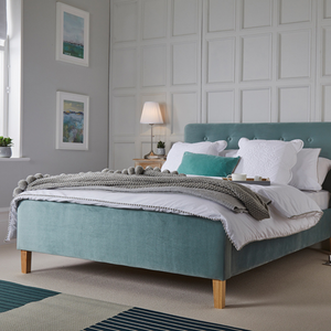 LPD Pierre Aqua Velvet Upholstered Bed Frame